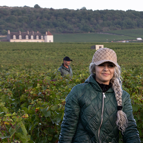 Ce matin à la fraîche nous ramassons le grand cru du Clos Vougeot, notre parcelle la plus à l’Est. Le temps est très humide, le ciel est couvert mais nos vaillants vendangeurs continuent leur tâche avec le sourire et avec courage.